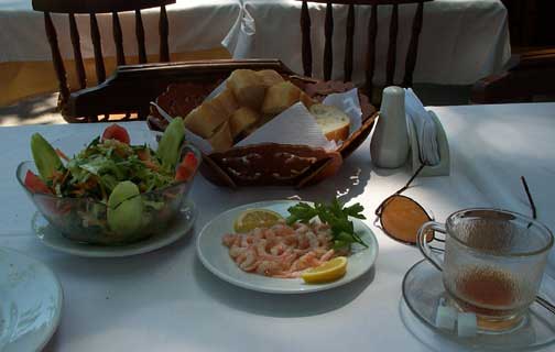 The strait connects the Black Sea and the Sea of Marmara - 32 miles long and 3 miles wide at it's widest. It has not changed much since Jason and the Argonauts sailed through in search of the golden fleece, except that he now could take a public ferry for about five dollars or hire any number of tour boats that cost quite a bit more. Awake at 5:00 (read previous e-mail), up at seven to eat yet another wonderful breakfast. Walked a half block to an Internet café to send yesterday's travelogue and spent the next hour trying to attach photos. Internet is slow due to earthquake damage somewhere, or so I am told. Had a major breakthrough - I figured out how to use my laptop to connect directly to the Internet, but since I am leaving tomorrow I do not know how well I will be able to connect elsewhere. Walked back to the hotel and had them call a taxi for a lift to the ferry - the taxi arrived about 15 seconds later (I am not kidding). Taxi to Ferry - Ferry to Black Sea - a stop at a small fishing village and then back to Istanbul. And all for five dollars.