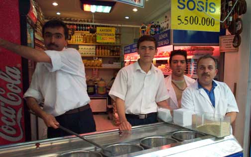 A little about money: The American dollar is worth literally millions - The Euro is worth even more. Specifically, the American dollar is worth 1,434,100 Turkish lire. The largest printed currency in Turkey is the 20,000,000 note, and it is worth $14 - The smallest Turkish note is the 100,000 note and it is worth 7 cents. The Turks have coins but they are worth more as scrap metal than as currency. Now, does this mean everything is free? NO. It means that you have to count a lot of zeros whenever you buy something. A soft drink costs a million lire (about 75 cents), a nice meal costs 15,000,000 lire (about 10 dollars) Taxi to airport - 15 dollars, one hour of Internet time (one dollar), taxi to almost anywhere in your neighborhood (3 dollars), a hotel room (60 dollars) - that's over 86 million lire if you like lots of zeros. You can pay in lire, dollars, or euros, but considering the seller will determine today's value in lire, you might do better by giving him lire to begin with. Most places in Istanbul accept credit cards which makes everything easier, but the vendors will add a bit to the bill to offset the cost of using plastic.